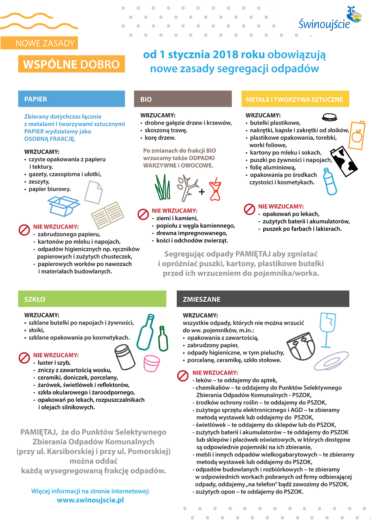 Od 01.01.2018 r. obowiązują nowe zasady segregacji odpadów. Jeśli chcesz dowiedzieć się więcej o segregacji odpadów w naszym mieście zapraszamy do lektury.