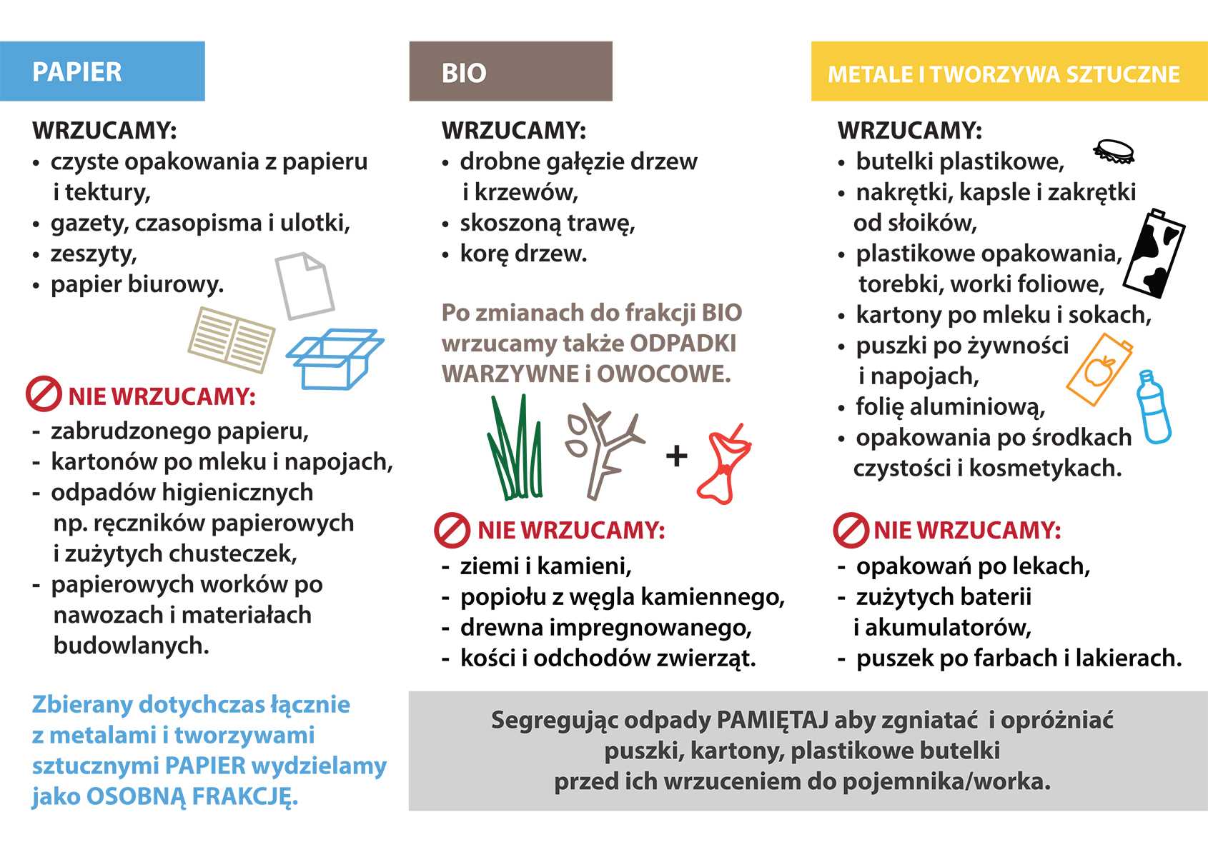 ZASADY SEGREGACJI ODPADÓW plakat i ulotki informacyjne