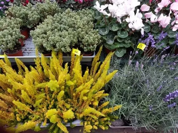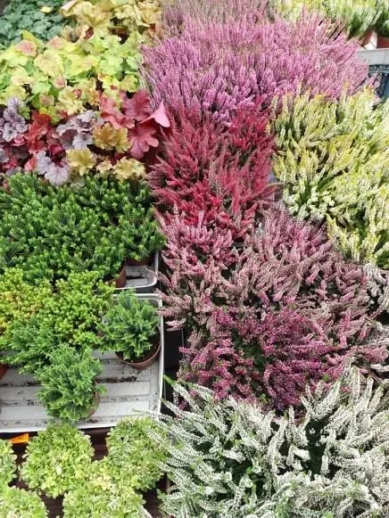 - cyklameny, wrzosy, kapustę ozdobną w różnej gamie barw i wielkości