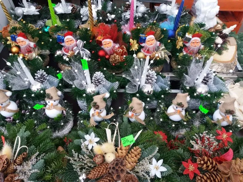 Handlowcy oferują stroiki adwentowe, świąteczne, kwiaty, gałązki świerkowe i jemiołę.