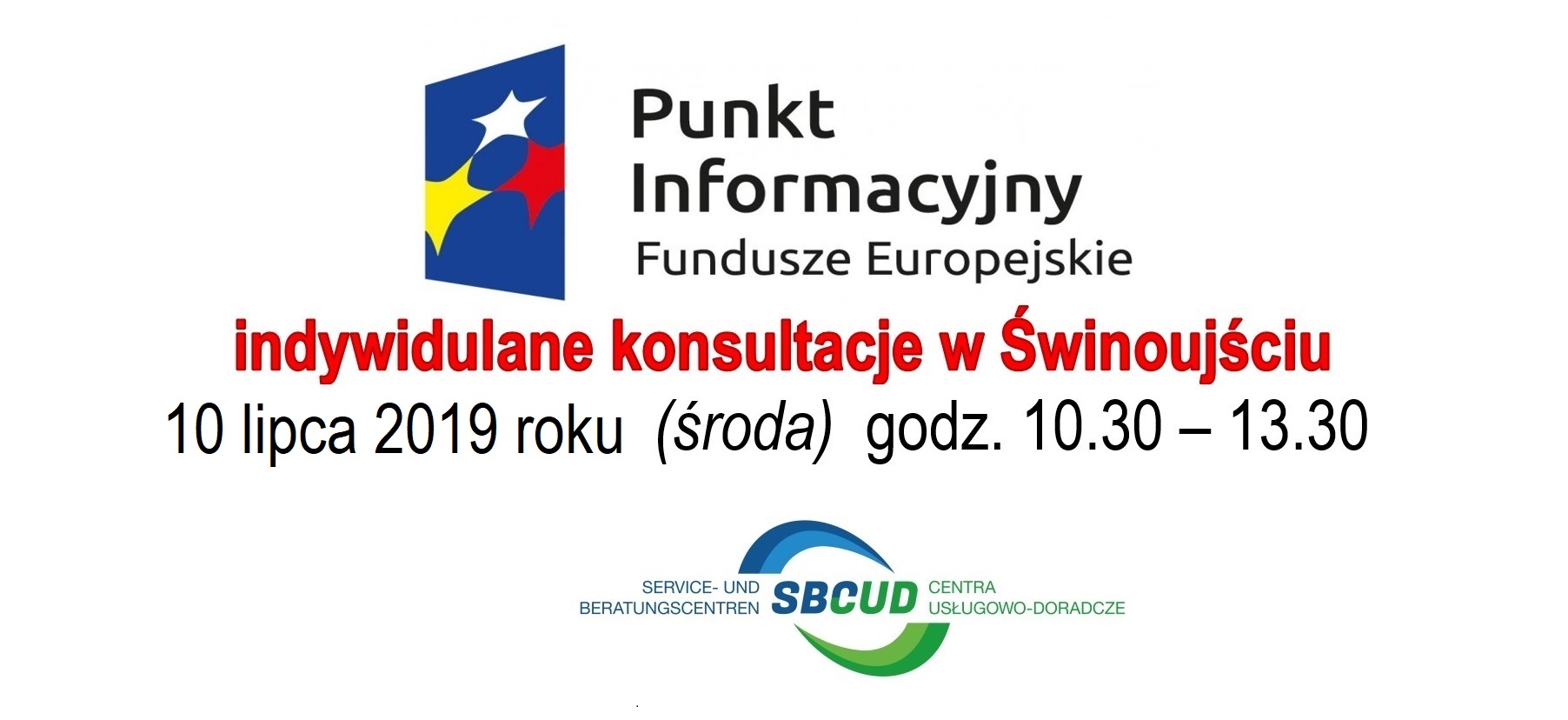 Szanowni Państwo, informujemy, że w siedzibie Centrum Usługowo- Doradczego przy ul. Piastowskiej 62 uruchomiony został cykliczny dyżur Punktu Informacyjnego Funduszy Europejskich w ramach Mobilnego Punktu Informacyjnego. Cykliczny dyżur Punktu Informacyjnego Funduszy Europejskich jest w każdą drugą środę miesiąca. Kolejny już jutro 10 lipca 2019 roku w godz. 10.30 – 13.30. Centrum Usługowo- Doradcze w Euroregionie Pomerania ul. Piastowska 62 ( obok ZUS) pok. nr 4