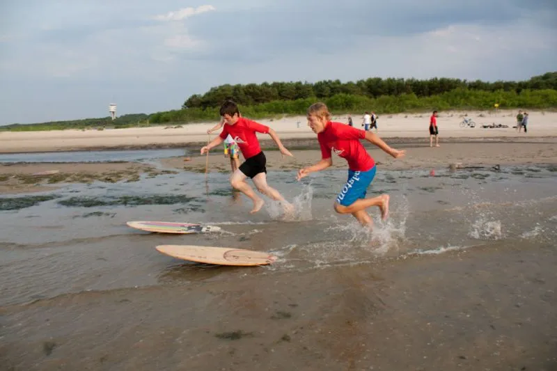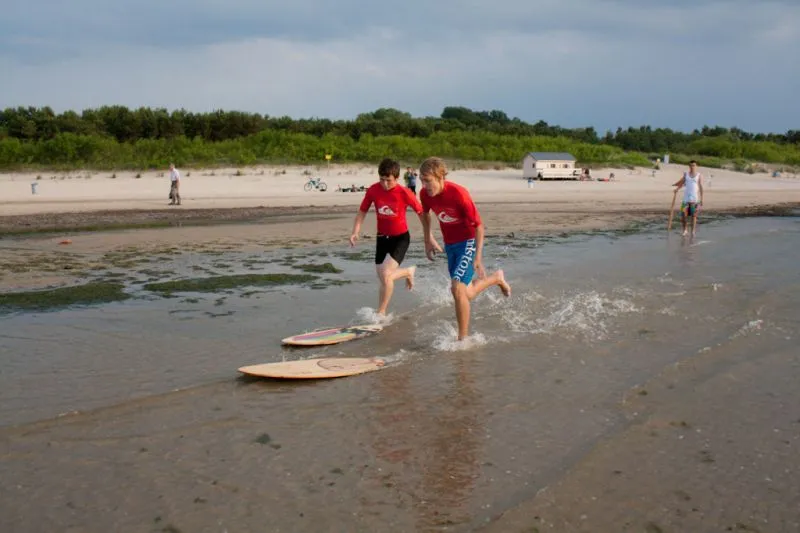 i szeroka świnoujska plaża, polecane są przez instruktorów jako najbezpieczniejsze miejsce do nauki kitesurfingu i skimboaqrdu. Natomiast bliskość innych spotów umożliwia kontynuowanie nauki w przypadku zmiany warunków pogodowych tzn. kierunku czy siły wiatru.