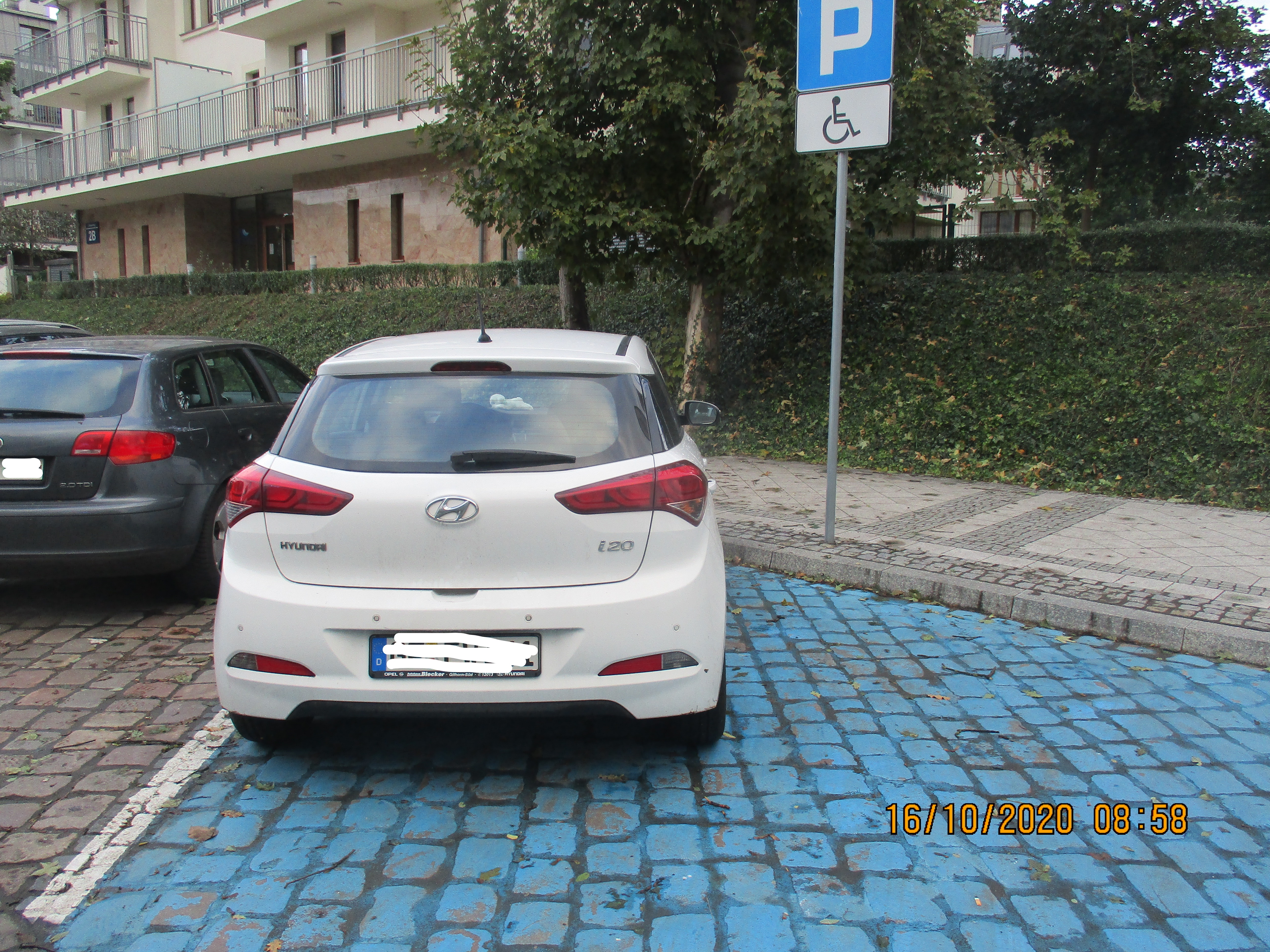 Auto nieprzepisowo parkujące w miejscu dla niepełnosprawnych.