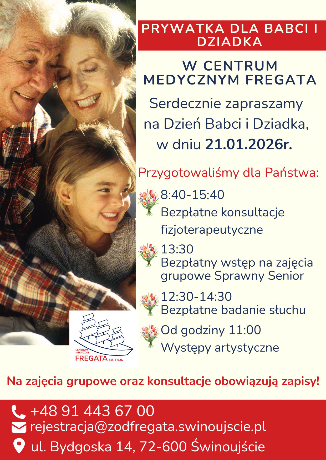 Centrum Medyczne Fregata zaprasza na wyjątkowe wydarzenie z okazji Dnia Babci i Dziadka, które odbędzie się 21 stycznia 2026 r. o godzinie 11:00.
