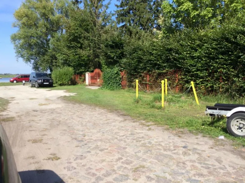 - nawierzchnię trawiastą na pozostałym obszarze części wjazdowej, przy czym nawierzchnia ta zaprojektowana została i wykonana w sposób umożliwiający wykorzystywanie jej do okresowego parkowania samochodów osobowych z przyczepami do przewozu kajaków;
