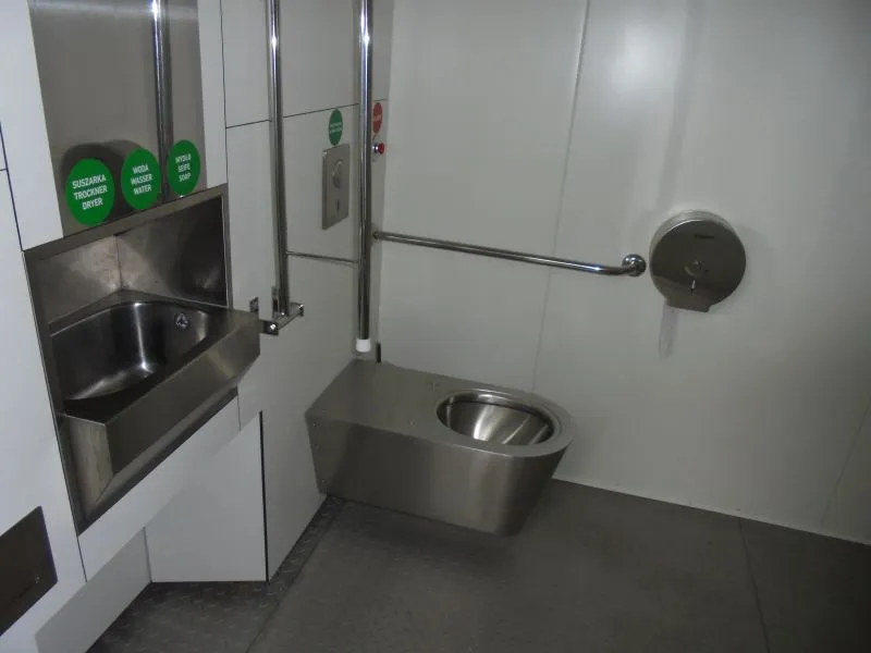 - toalety (ogólnodostępnej, w pełni przystosowanej dla potrzeb osób niepełnosprawnych, udostępnianej sezonowo; w zewnętrznej części obiektu zaplanowano lokalizację zlewu z bieżąca wodą, wykonanego z betonu lub podobnego materiału o wysokiej odporności na zniszczenie, wyposażonego w blat),