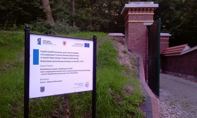 Gmina Miasta Świnoujście otrzymała środki z Europejskiego Funduszu Rozwoju Regionalnego w ramach Regionalnego Programu Operacyjnego Województwa Zachodniopomorskiego na lata 2007-2013, na remont zabytkowej bramy w Parku Zdrojowym, przy ul. Jachtowej.