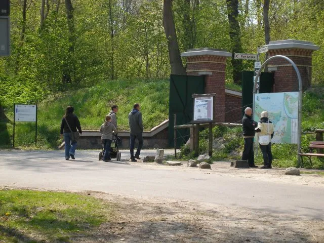 Historia zabytkowej bramy (zwanej również parkową, obronną) sięga 1863 roku, kiedy to Świnoujście ogłoszono twierdzą morską. Dwa funkcjonujące dotąd samodzielnie forty zachodnie: Werk III i Werk IV (obecnie Fort Anioła i Fort Zachodni), otoczone zostały wspólną fosą, tworząc kompleks fortyfikacyjny – Zachodni Zespół (Kompleks) Fortyfikacyjny. Ochronę wjazdu na teren kompleksu wzmocniono bramą obronną, stanowiącą jednocześnie przyczółek dla zwodzonego mostu.