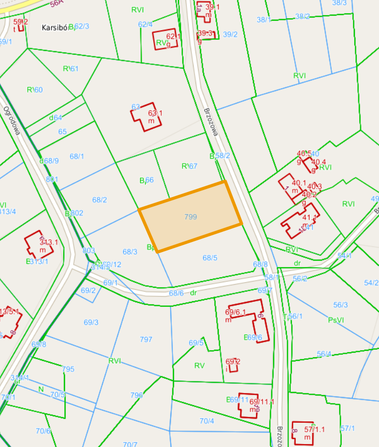 Nieruchomość niezabudowana położona przy ul. Brzozowej, Karsibór