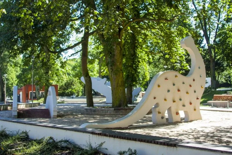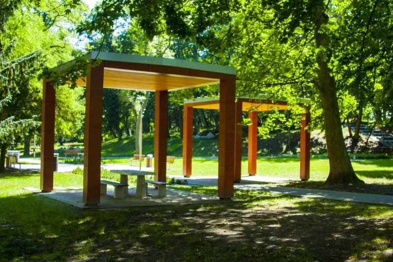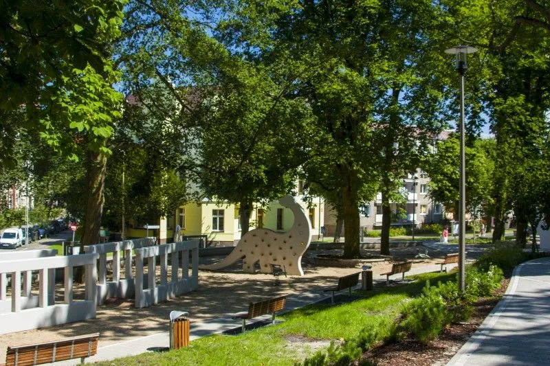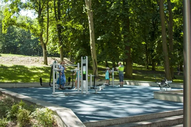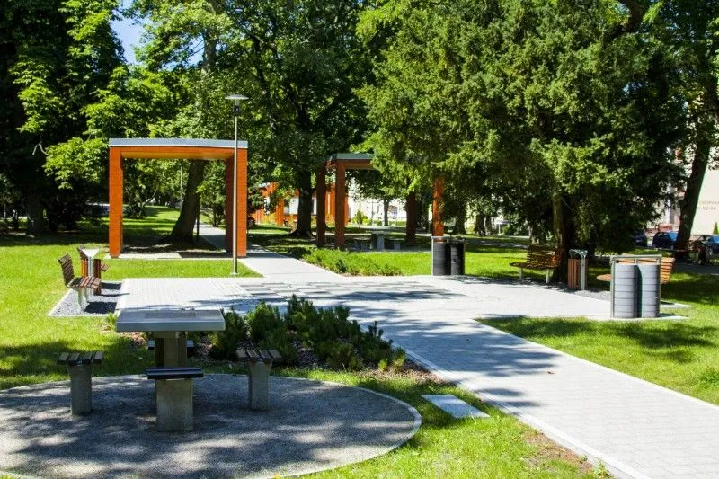 - zagospodarowanie parku (ciągi piesze i place parkowe, ścieżki żwirowe, pole do gry w Boule, nawierzchnie wokół budynku obsługi technicznej oraz pod altanami i stołami do gry w szachy, place zabaw, siłownia terenowa, stok saneczkowy, szachownica terenowa, podjazdy dla wózków na ciągach pieszych ),