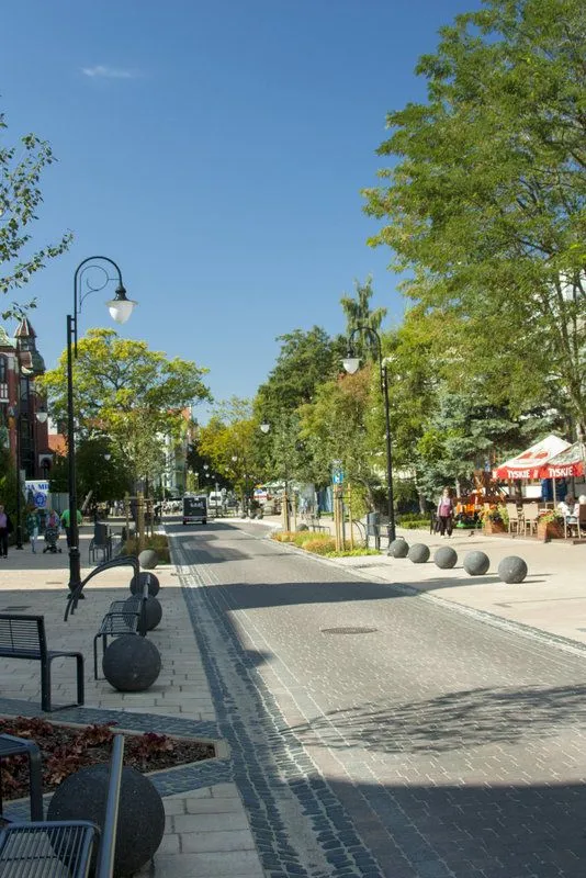 - w ramach zagospodarowania ulicy zrealizowano budowę fontanny w postaci kuli stalowej grawerowanej u zbiegu ulic: Matejki i Słowackiego.
