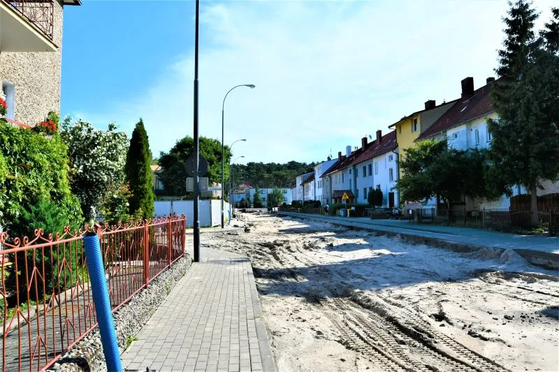 Zakończyły się prace związane z wykonaniem kanalizacji deszczowej i instalacji elektrycznej pod oświetlenie uliczne. Mimo licznych kolizji z podziemną infrastrukturą techniczną prace zostały wykonane terminowo. W chwili obecnej trwają przygotowania do rozpoczęcia prac związanych z wykonaniem konstrukcji jezdni, tj. wykonanie korytowania, podbudowy i w dalszej kolejności warstwy wiążącej i ścieralnej z mieszanki mineralno-asfaltowej.