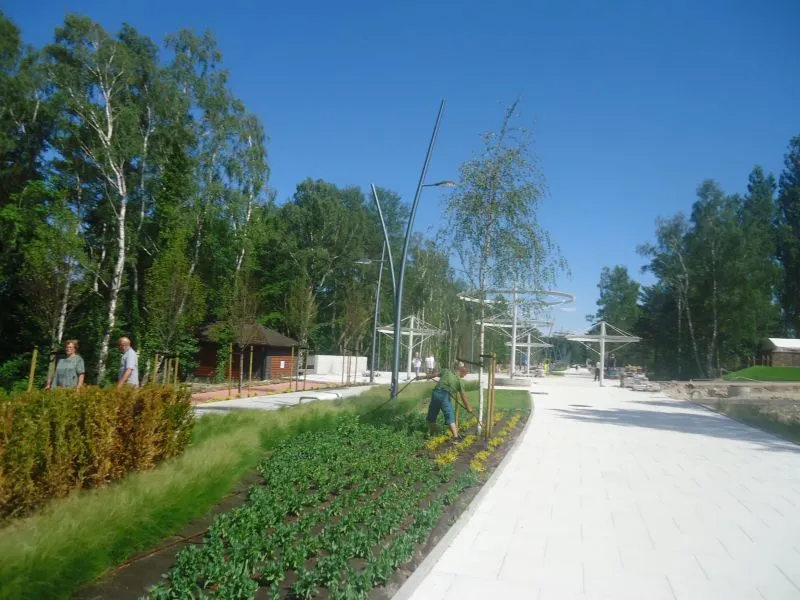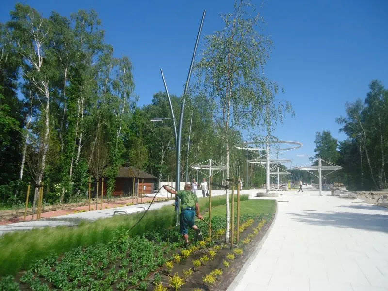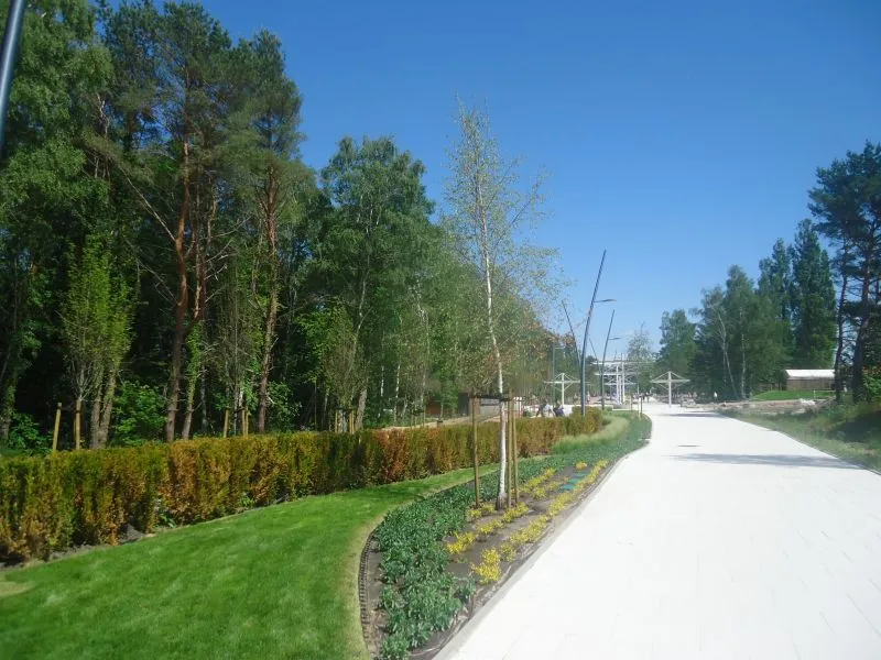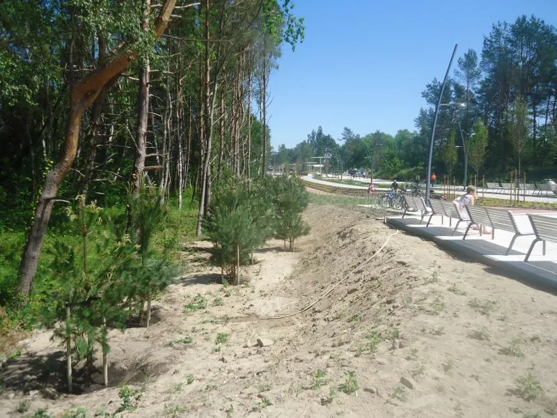 - nasadzenia zaprojektowane w ramach Promenady Zdrowia: [Już w ramach tej inwestycji posadziliśmy m.in. 65 grabów, 7 brzóz i dwa jarząby - wylicza Małgorzata Gawrońska, której firma jest odpowiedzialna za tę część inwestycji i będzie przez trzy lata opiekowała się tą roślinnością. - Docelowo ma tu być posadzonych m.in. 147 grabów];