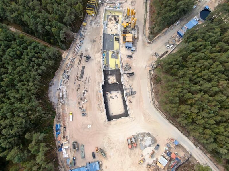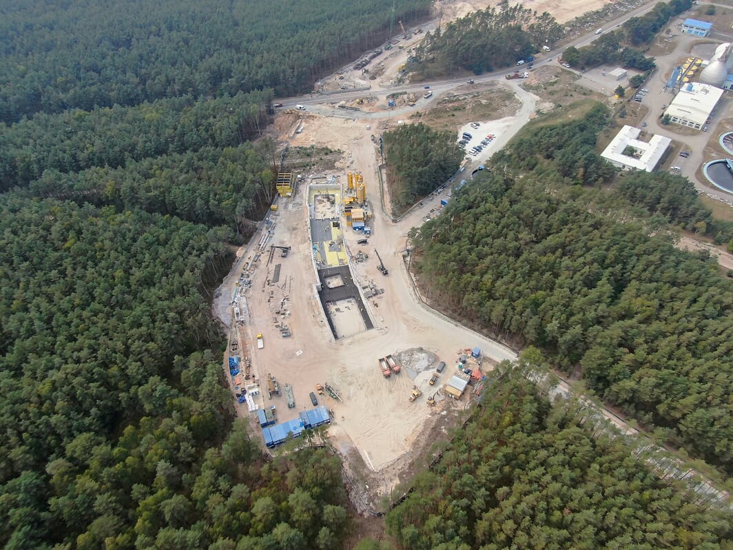 Na zdjęciu widok z lotu ptaka na budowę na wyspie Wolin.