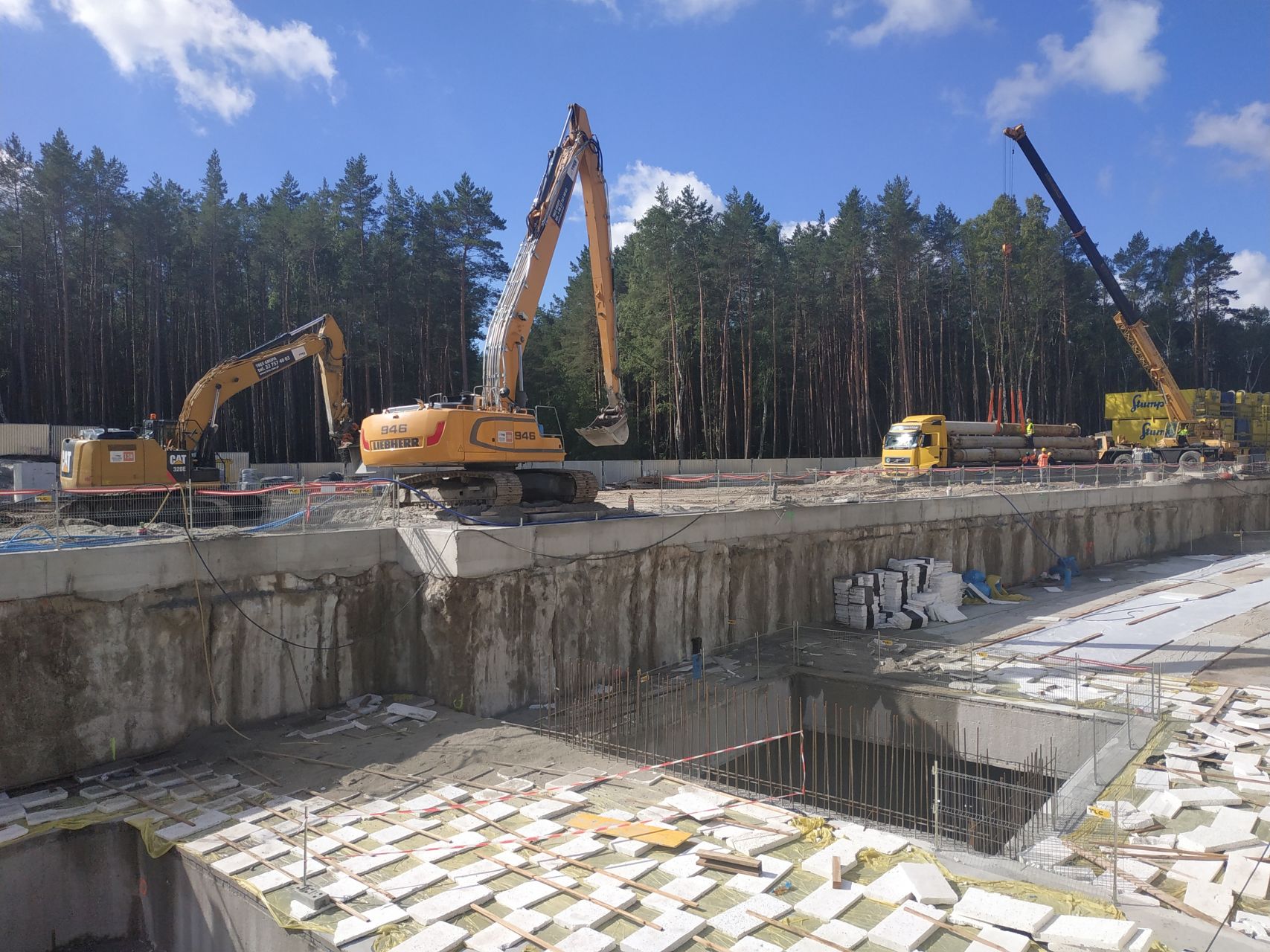 Przebudowa sieci wysokiego napięcia 110 kV i wykonywanie platform roboczych dla ścian szczelinowych komory odbiorczej TBM – to jedne z istotniejszych prac, jakie toczyły się w minionym tygodniu na wyspie Wolin.