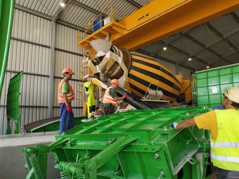 W zakładzie prefabrykacji odbywają się próbne odlewy segmentów obudowy i prefabrykacja płyt drogowych.