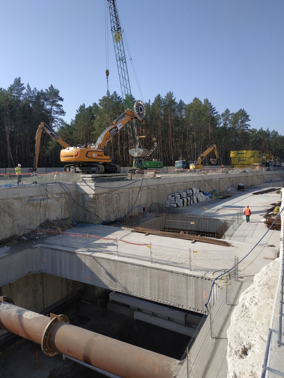 Na wyspie Uznam w segmencie pierwszym rozpoczęto wykop pod płytę denną. W segmentach od drugiego do szóstego zakończono budowę wieńca ścian szczelinowych, rozpór żelbetowych stałych oraz montaż rozpór tymczasowych. W segmencie siódmym zakończono przesłonę jet-grouting. W segmentach dziesiątym i jedenastym zakończono ściany szczelinowe i rozpoczęto wykonywanie przesłony jet- grouting.