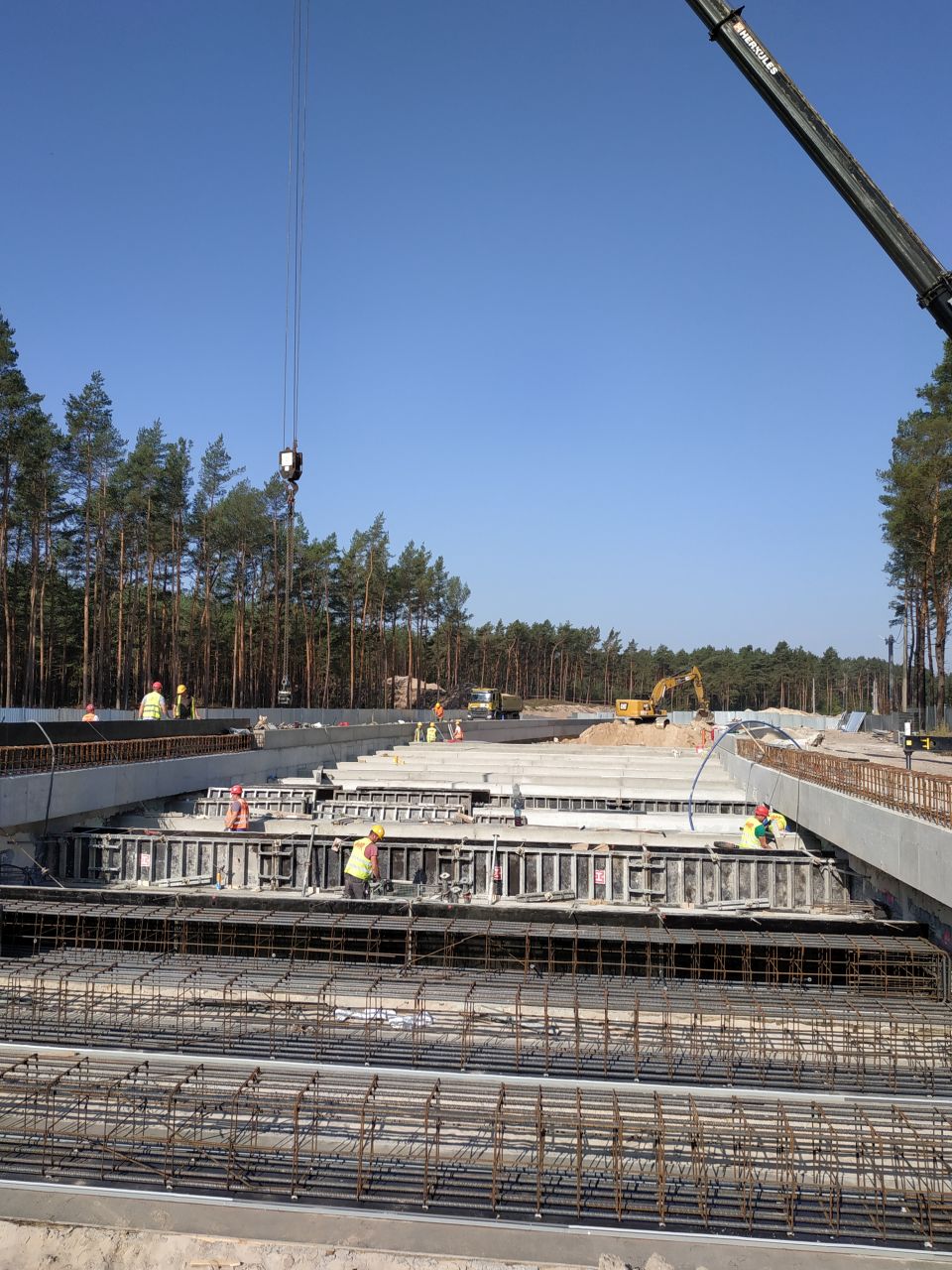 Ważne prace toczą się wokół i w komorze startowej dla maszyny TBM. Trwa wykop podstropowy do poziomu płyty dennej, mycie ścian szczelinowych oraz montaż drugiego poziomu rozparcia tymczasowego. Komora jest też odwadniana. Dodatkowo przygotowywany jest plac do rozładunku i składowania elementów maszyny TBM przy komorze startowej.