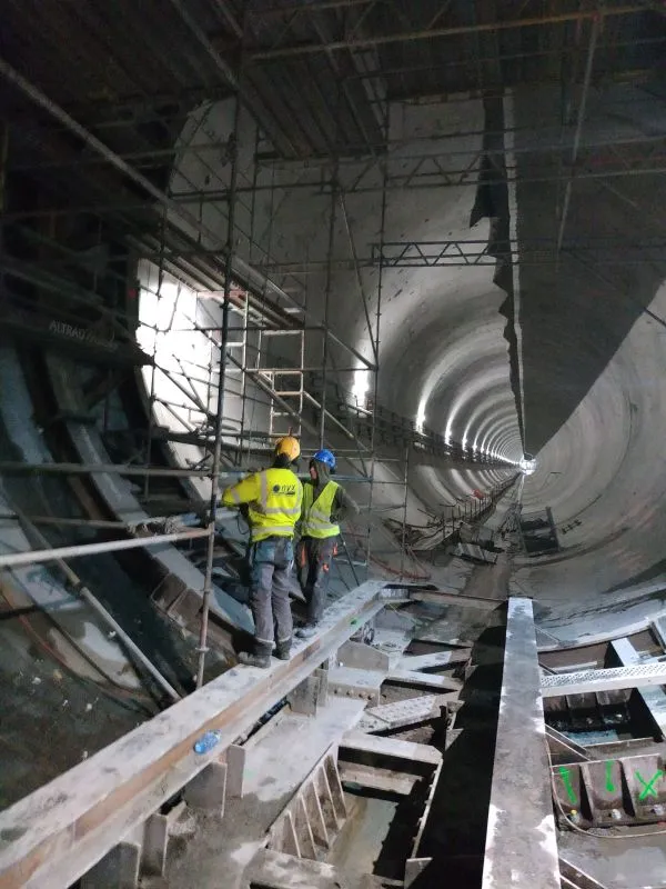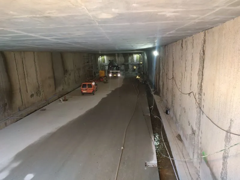 Intensywne prace prowadzone są wewnątrz wydrążonego tunelu. Montowana jest stalowa konstrukcja wzmacniająca obudowę tunelu przy wyjściu ewakuacyjnym nr 1 (EE1). Z kolei przy wyjściu ewakuacyjnym nr 2(EE2) zakończono wykonanie podlewki konstrukcji wzmacniającej obudowę tunelu.