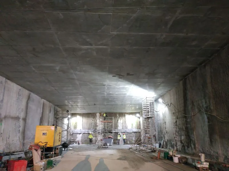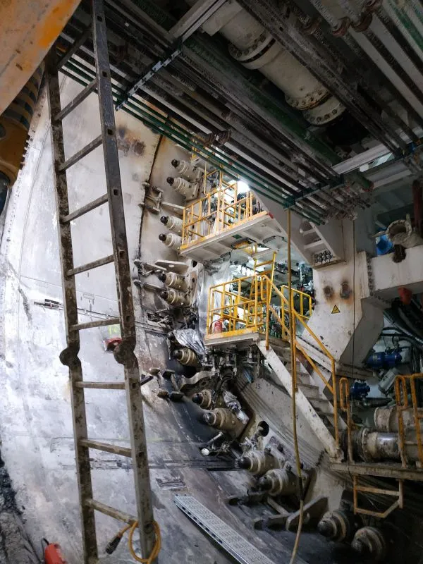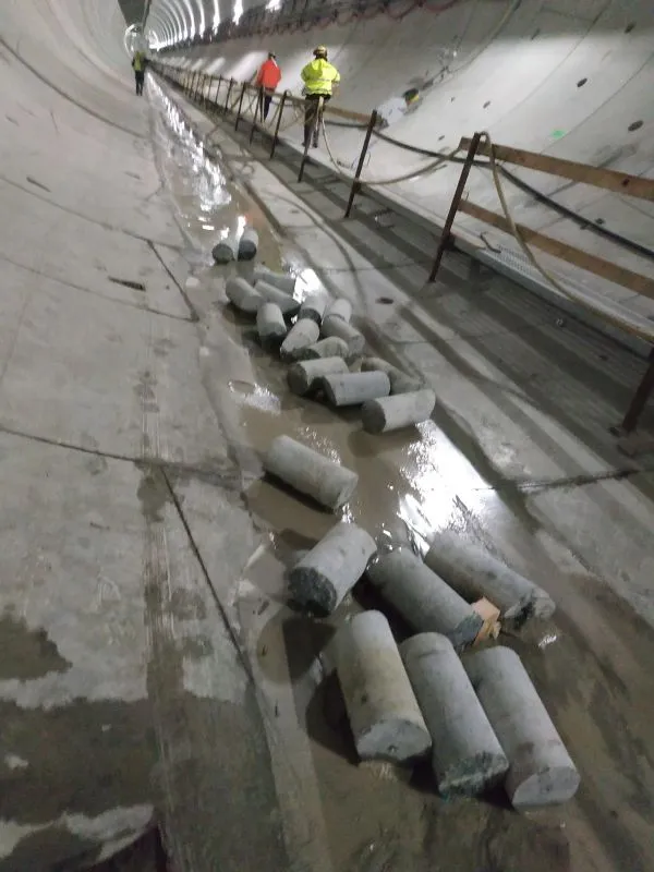 Wciąż trwa wiercenie i wklejanie kotew pod wsporniki dla prefabrykatów. Odbywa się także demontaż rurociągów technologicznych TBM.