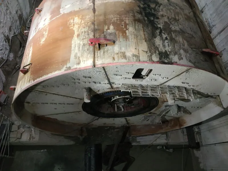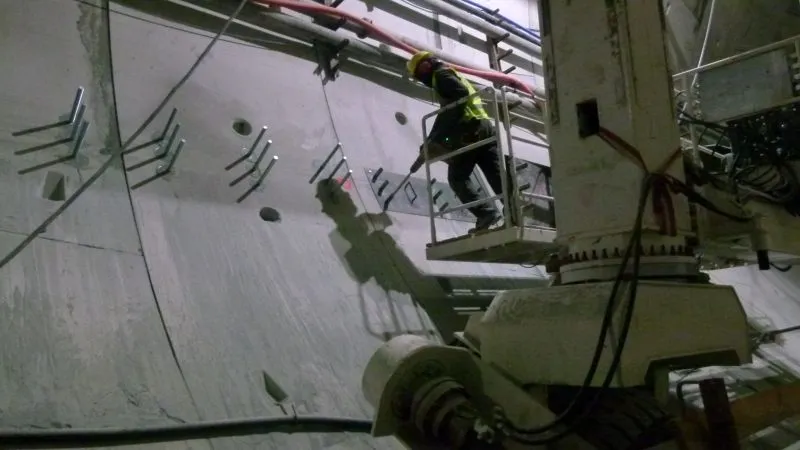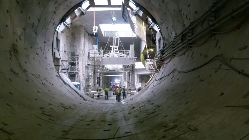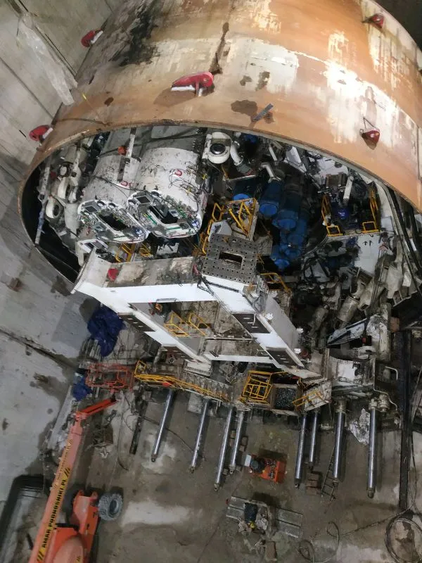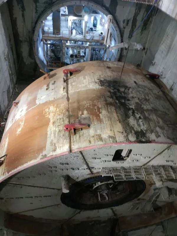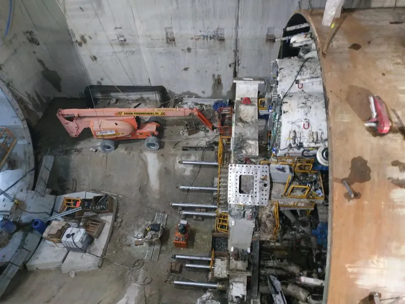 W szybie startowym demontowana jest rama oporowa, która była potrzebna w momencie startu maszyny TBM.