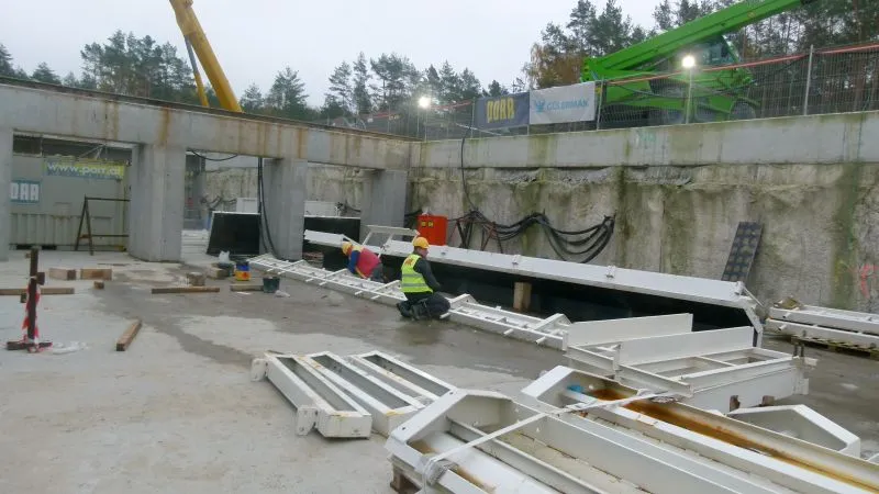 W zakładzie prefabrykacji powstają prefabrykaty dla konstrukcji wewnętrznych w tunelu TBM (pod płytę jezdną - typ "U" i filigrany, płyty sufitowe,).