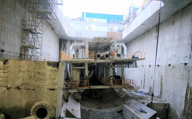 Prace prowadzone są też w rejonie segmentów R1 - R16. Kontynuowany jest demontaż ściany szczelinowej, zamykającej komorę odbiorczą TBM od strony rampy.