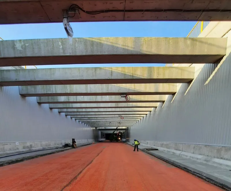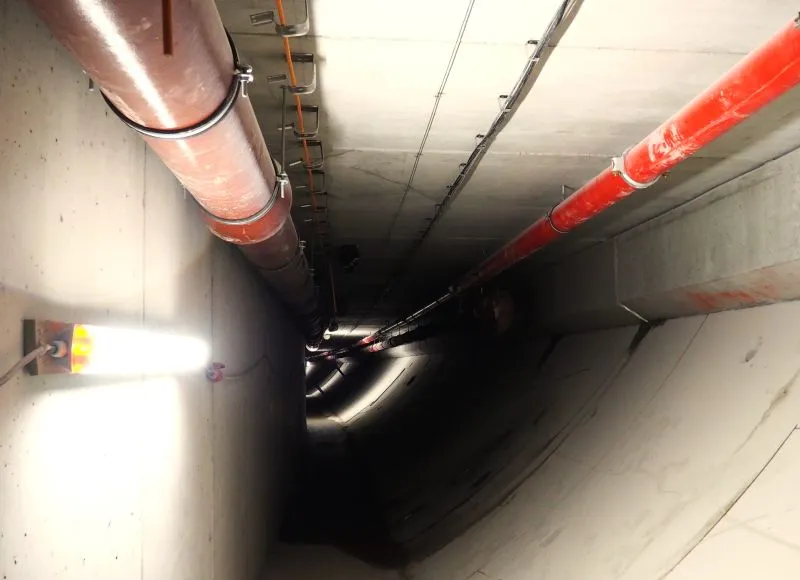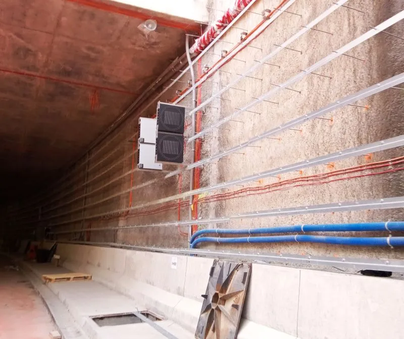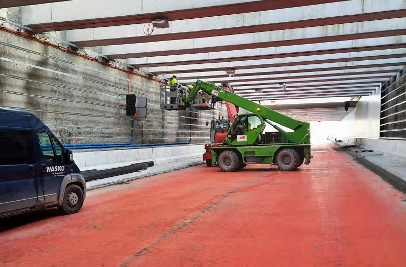 Przy wyjściach ewakuacyjnych w tunelu TBM montowana jest instalacja infrastruktury. Cała konstrukcja jest doszczelniana, a obudowa tunelu jest również czyszczona.