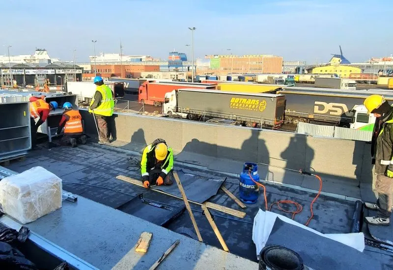 Na wyspie Wolin w komorze odbiorczej trwają prace nad konstrukcjami wewnętrznymi. W części rampowej powstaje obudowa z paneli aluminiowych na ścianach szczelinowych. W budynku stacji Trafo TK2, oprócz wykończenia pomieszczeń, wykonywane są prace instalacyjne. Na drogach i wokół zbiorników ustawiane jest ogrodzenie.