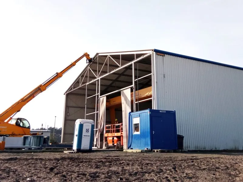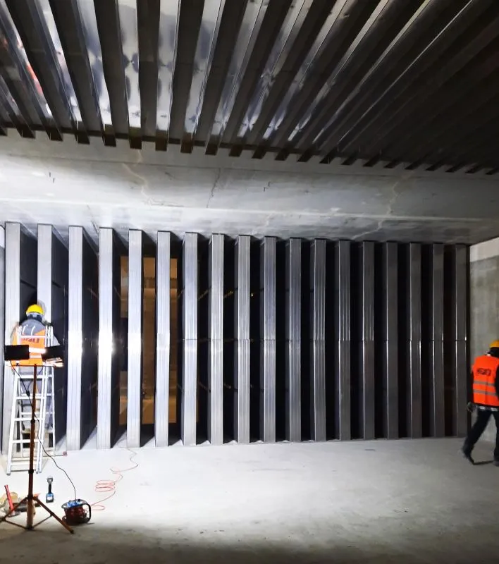 Na rampie montowane są panele aluminiowe, które tworzą elewację ścian szczelinowych. W wentylatorni VC1 montowane są tłumiki oraz konstrukcja wraz z żaluzjami  wentylacyjnymi  w wyrzutni wentylacyjnej. Na placu budowy rozpoczął się demontaż hali prefabrykacji.
