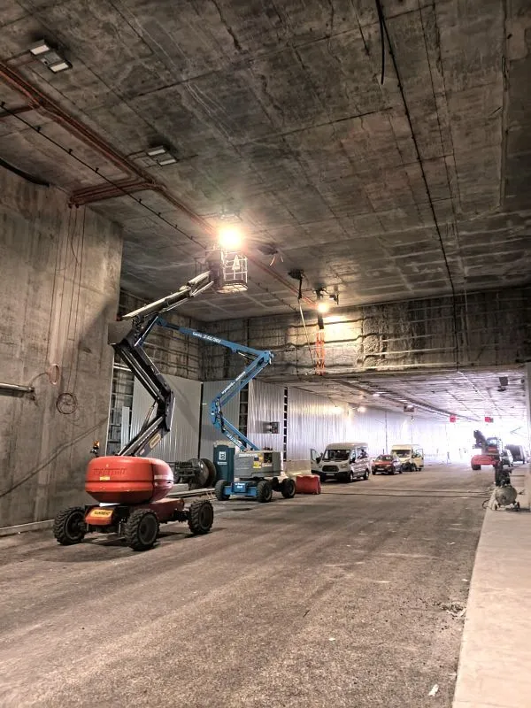 W budynku Biura Centrum Obsługi trwają prace instalacyjne i testy wszystkich urządzeń. Na terenie budowy trwają roboty związane z zagospodarowaniem przestrzeni na drogach dojazdowych i wokół budynków, na przykład stacji transformatorowych, gdzie wykonywane są prace brukarskie.