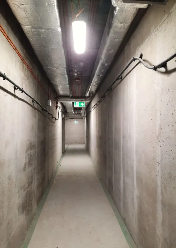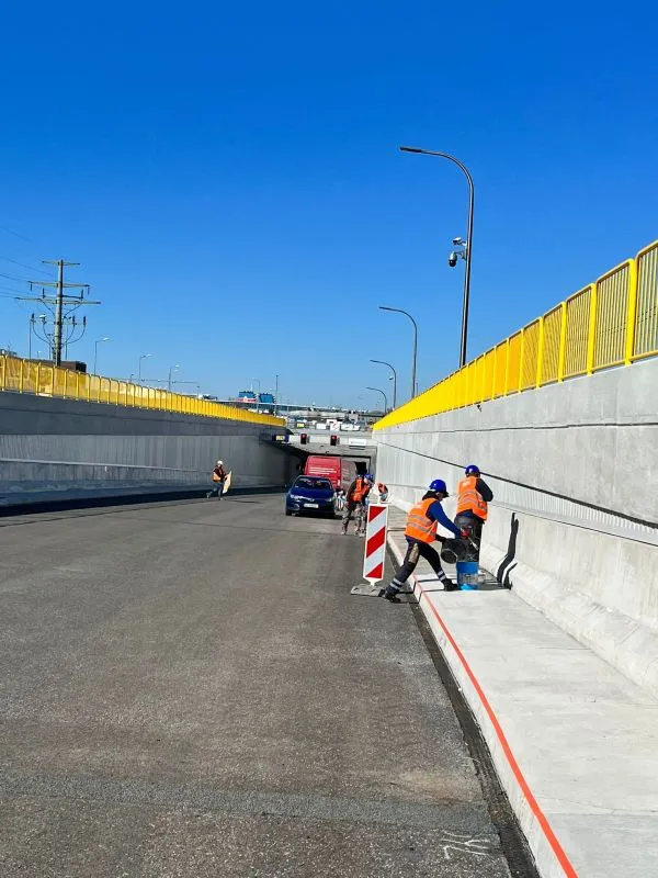 Zakończyło się malowanie klatek schodowych oraz wyjść ewakuacyjnych wykonanych w technologii mrożenia gruntu. Konstrukcja obu wyjść, obudowy tunelu oraz prefabrykatów pod jezdnią jest doszczelniana i czyszczona. Wykonywane są kolejne próby instalacji infrastruktury, w tym próby wentylacji.