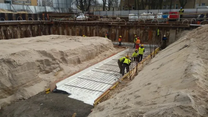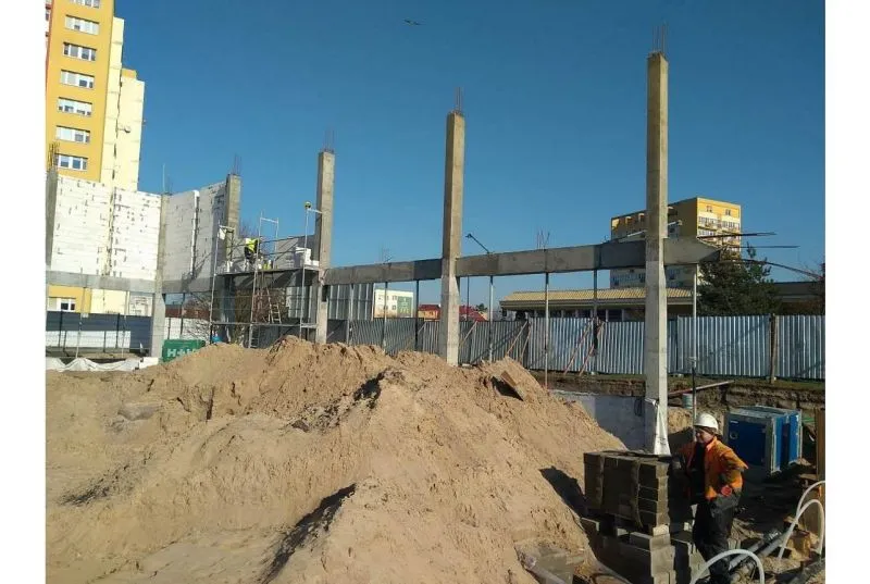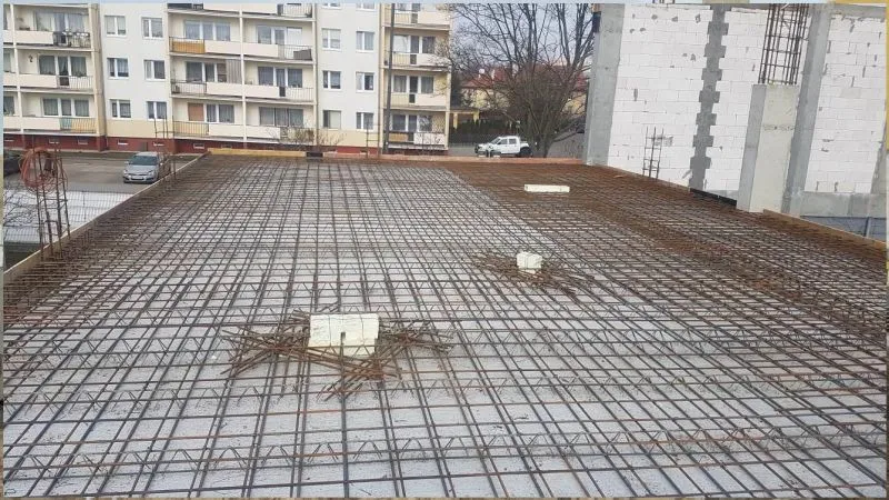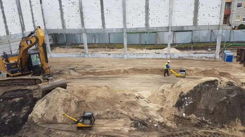 Nad parterem obiektów funkcyjnych hali sportowej już został ułożony strop. W samej hali wykonywano m.in. zagęszczenie gruntu pod budowę posadzki.