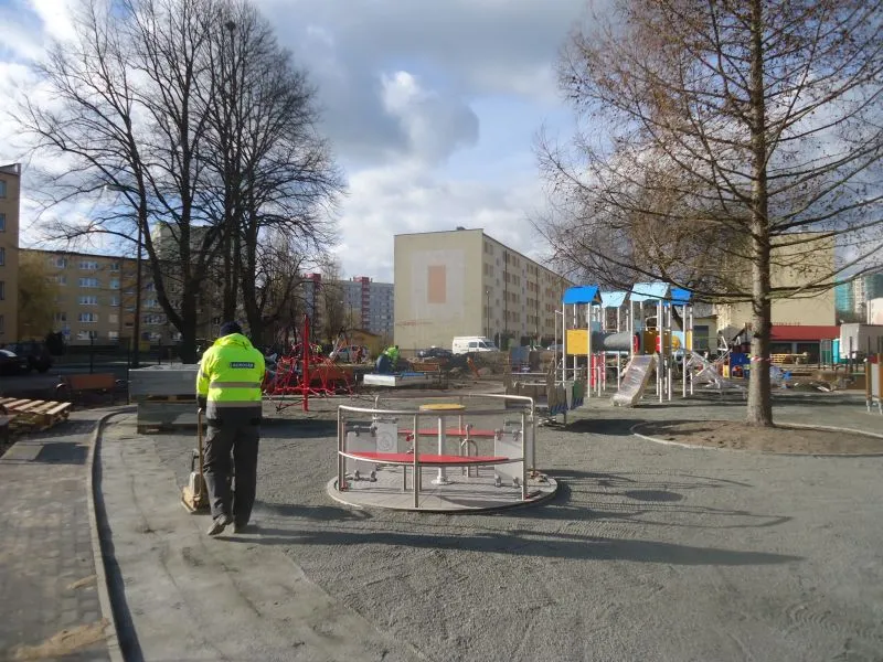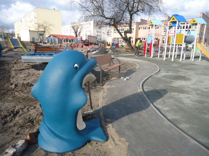 Powstały nowe ścieżki dla dzieci, wydzielono strefy zabaw, zamontowano większość nowych urzadzeń. Z dnia na dzień przyprzedszkolny plac zabaw staje się coraz bardziej kolorowy.