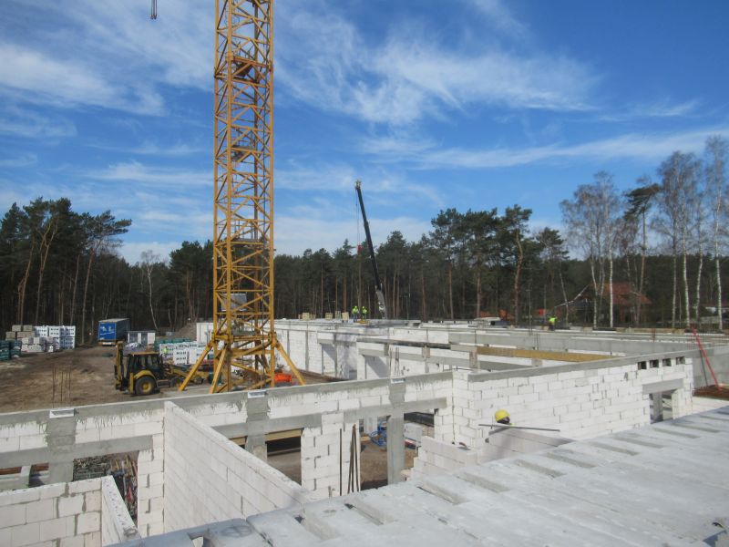 W kwietniu na terenie inwestycji prowadzone są prace budowlane – wykonanie kanalizacji deszczowej, gazowej i elektrycznej, ściany fundamentowe, montaż stropów, klatek schodowych.
