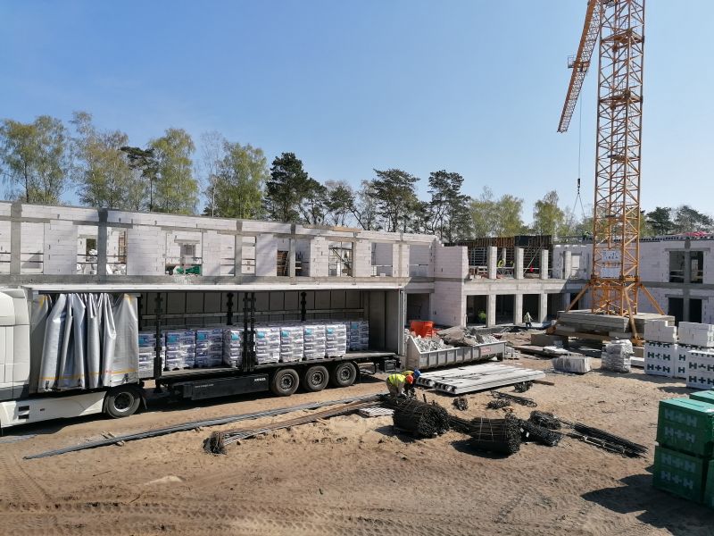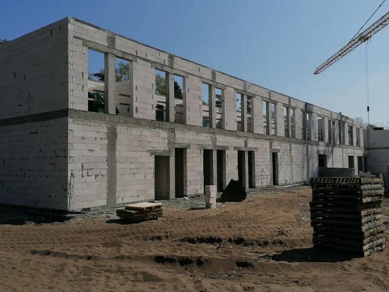 Z dnia na dzień widać postępy prac na budowie Zakładu Opieki Długoterminowej. Wykonany został już parter budynku wraz ze ściankami działowymi. Rozpoczęto prace związane z instalacjami branży elektrycznej, sanitarnej wraz z wentylacją mechaniczną. Kładzione są tynki gipsowe.