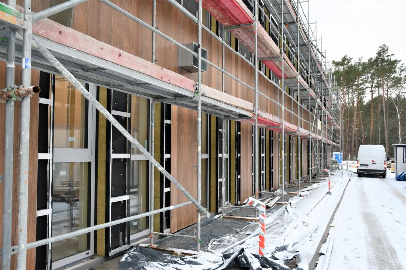 Powstający przy ulicy Bydgoskiej budynek Zakładu Opieki Długoterminowej będzie miał elewację wentylowaną. Aktualnie trwa montaż jej ostatniej warstwy, czyli płyt włókno-cementowych, które imitują drewno. Zobacz zdjęcia.