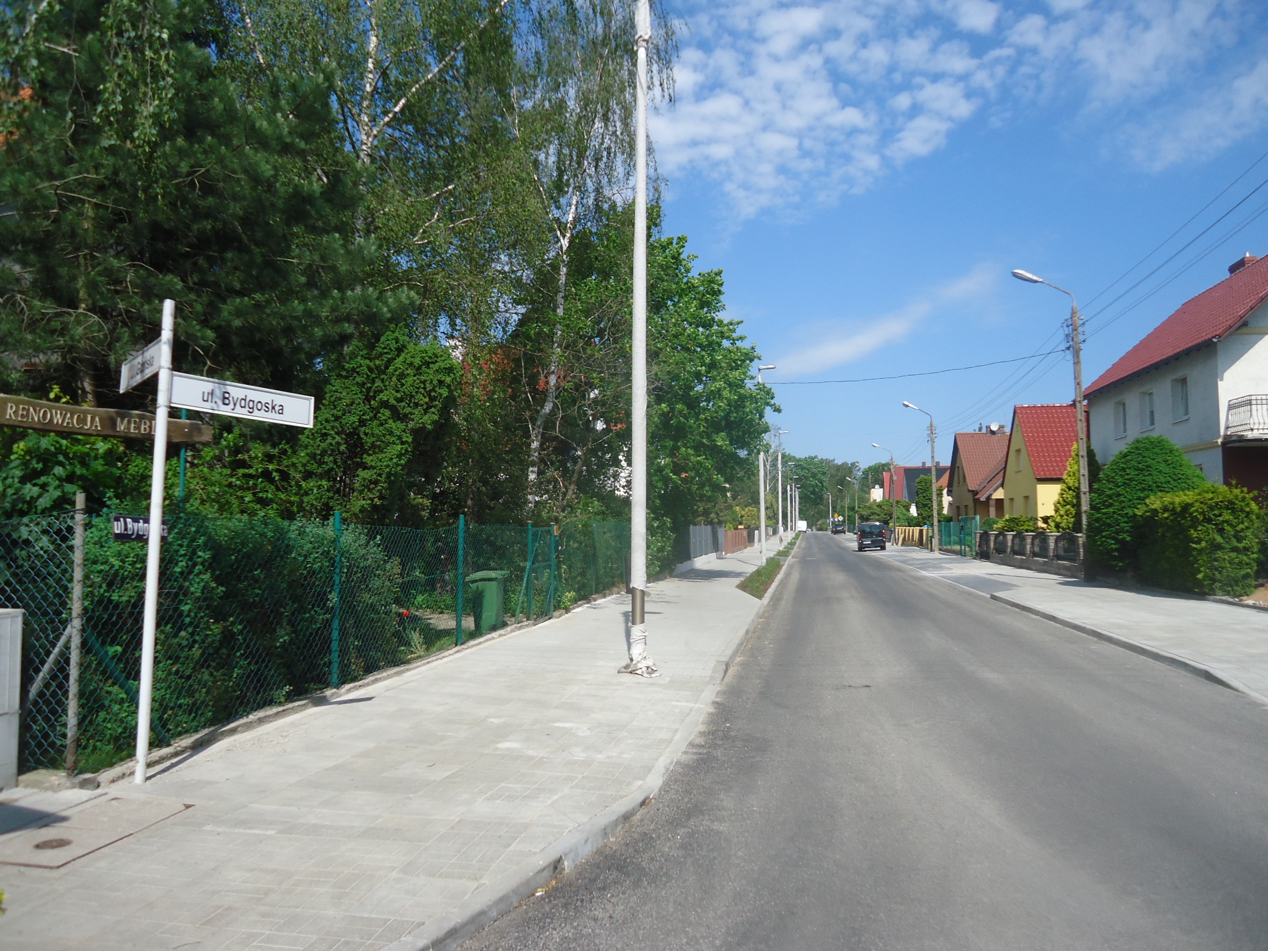Ulica Bydgoska została zmodernizowana na odcinku od skrzyżowania z ul. Gdańską do wysokości ul. Olsztyńskiej. Dalej zbudowano nową drogę, którą dojedziemy do przedszkola oraz przyszłego Zakładu Opieki Długoterminowej. To kilkaset metrów prostej, nowej gładkiej jezdni. Dlatego, ze względów bezpieczeństwa, by uniemożliwić kierowcom jazdę z nadmierną prędkością, skrzyżowanie Bydgoska - Olsztyńska będzie "wyniesione" i wybudowane z kostki betonowej. Dzięki temu będzie pełniło jednocześnie rolę progu zwalniającego.