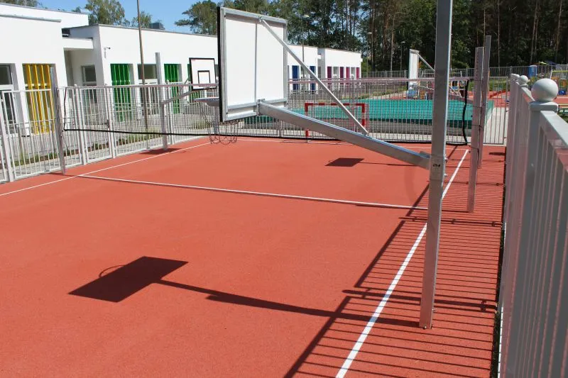Plac zabaw jest duży i wyposażony w wiele przyrządów, są: huśtawki, małe ścianki wspinaczkowe, zjeżdżalnie, piaskownice (zakrywane), ale także kompleks miniboisk sportowych.