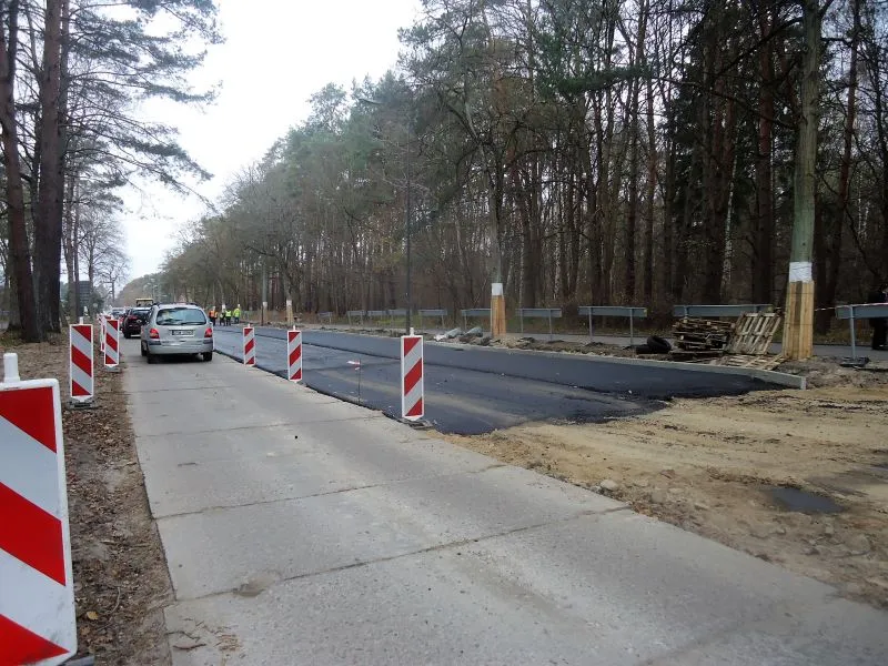 Po pokonaniu kłopotów związanych z brakiem pozwolenia na transport masy przez Swinemünder Chausse w czwartek 29 listopada rozpoczęło się układanie asfaltu na fragmencie najbliższym granicy. W piątek po południu jezdnia będzie gotowa na tyle, by puścić na niej ruch. Wprawdzie brakować będzie ostatniej warstwy asfaltowej (tzw. ścieralnej), ale ją wykonawca chce położyć na całej modernizowanej ulicy w ostatnim etapie budowy wiosną przyszłego roku.