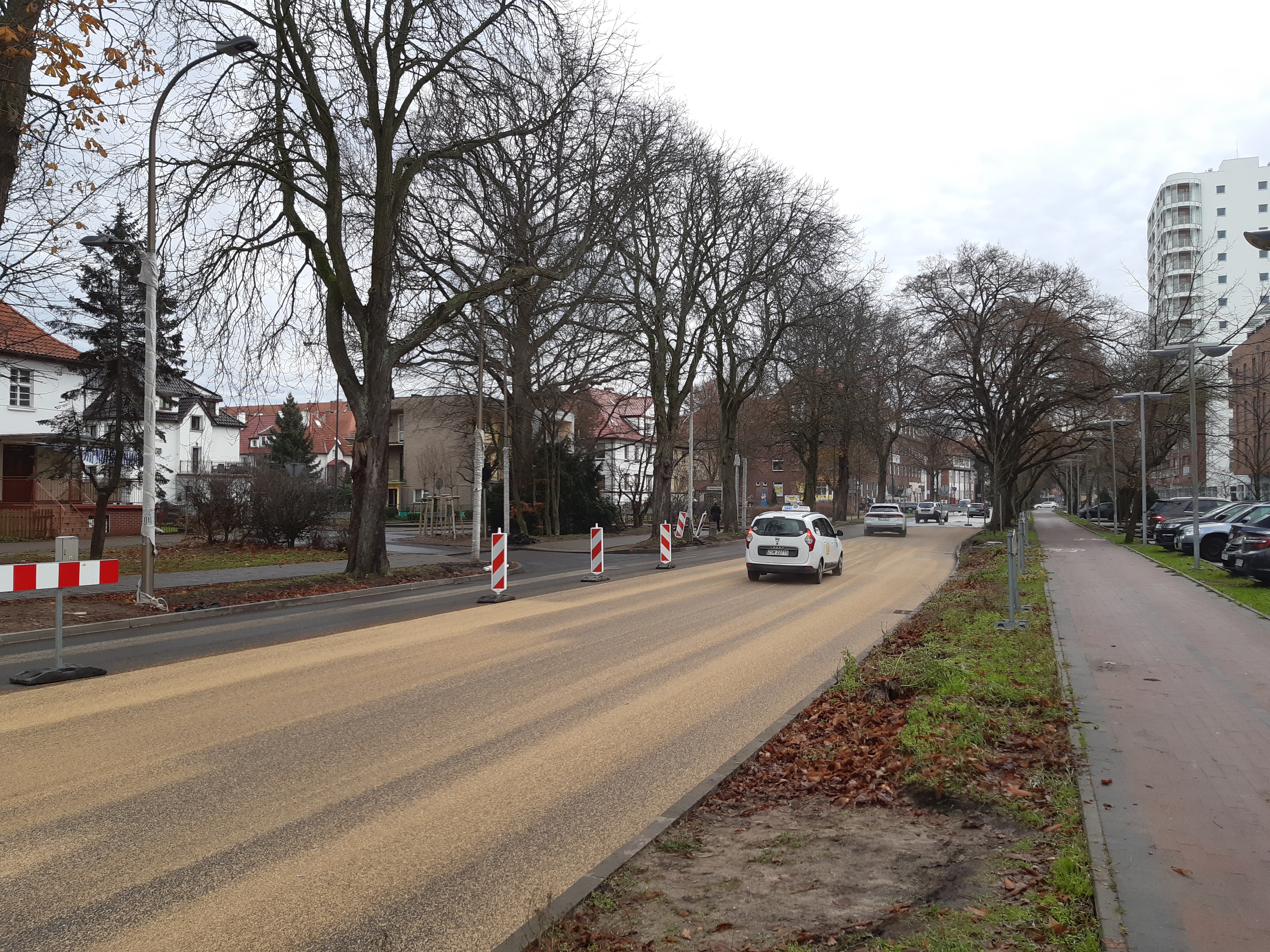 Po ułożeniu asfaltu przywrócony zostanie ruch kołowy na wprost w obu kierunkach, jednak przy wprowadzonych ograniczeniach dotyczących prędkości. Docelowa organizacja ruch będzie wprowadzona dopiero po wymalowaniu na jezdni oznakowania poziomego.