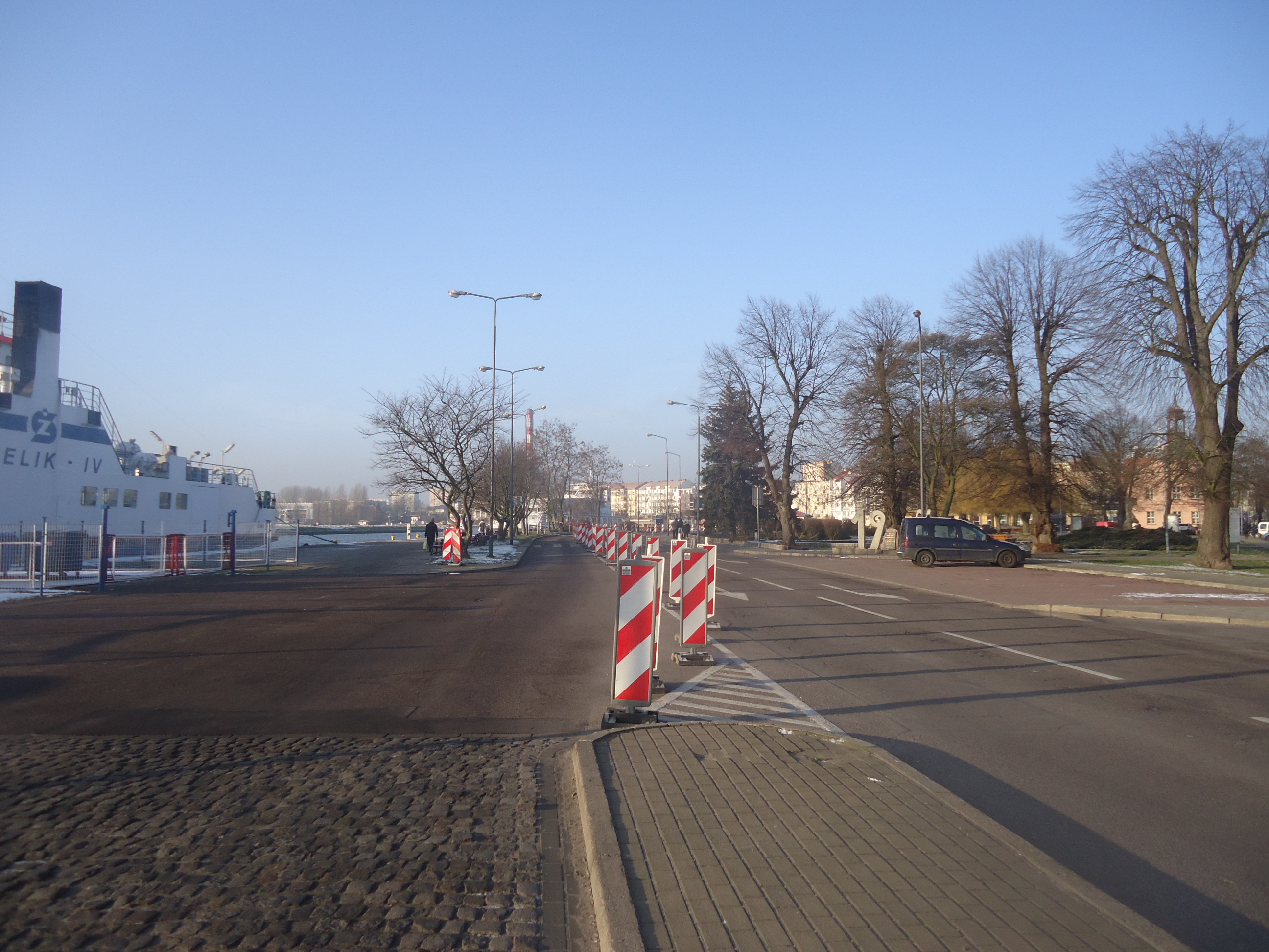 Dopuszczony tutaj zostanie jedynie ruch pojazdów wjeżdżających i oczekujących na przeprawę promową. Odbywa się on specjalnie wydzielonym do tego pasem jezdni.