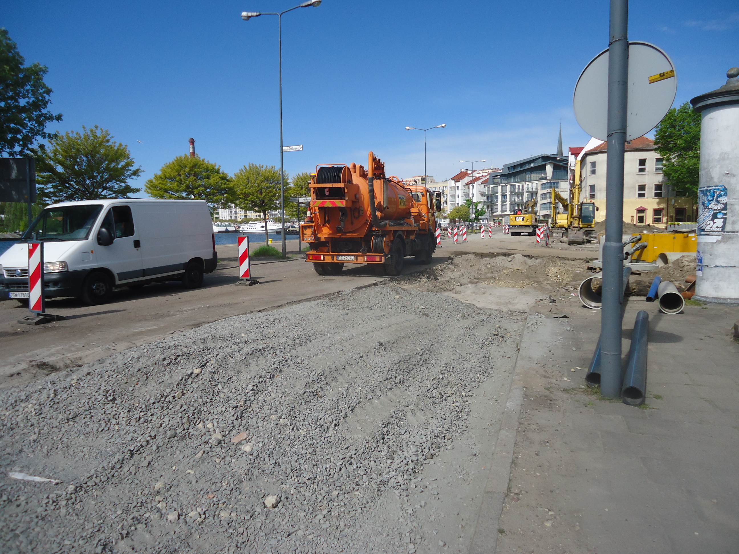Teraz prace skupią się na powierzchni. Po ułożeniu masy bitumicznej na pierwszej połowie jezdni ruch zostanie przeniesiony na tę część, a remontowana zostanie będzie druga. Przebudowana zostanie także część placu Rybaka wraz z miejscami parkingowymi.