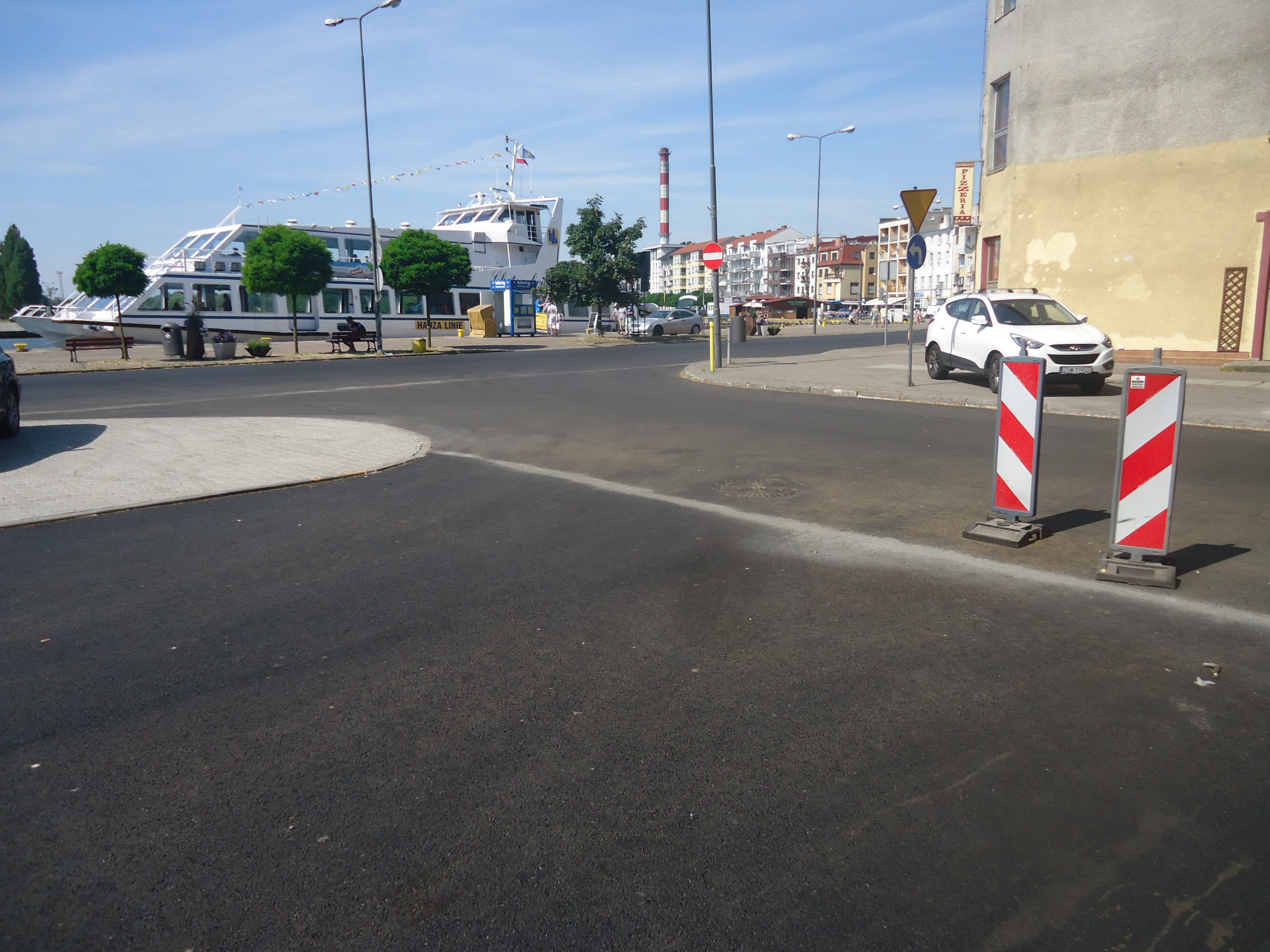Inwestycja jest na finiszu. Główna droga jest przejezdna. Kończone są prace przy odbudowie parkingu przy pl. Rybaka. Zadanie otrzymało dofinansowanie unijne w ramach Regionalnego Programu Operacyjnego Województwa Zachodniopomorskiego.