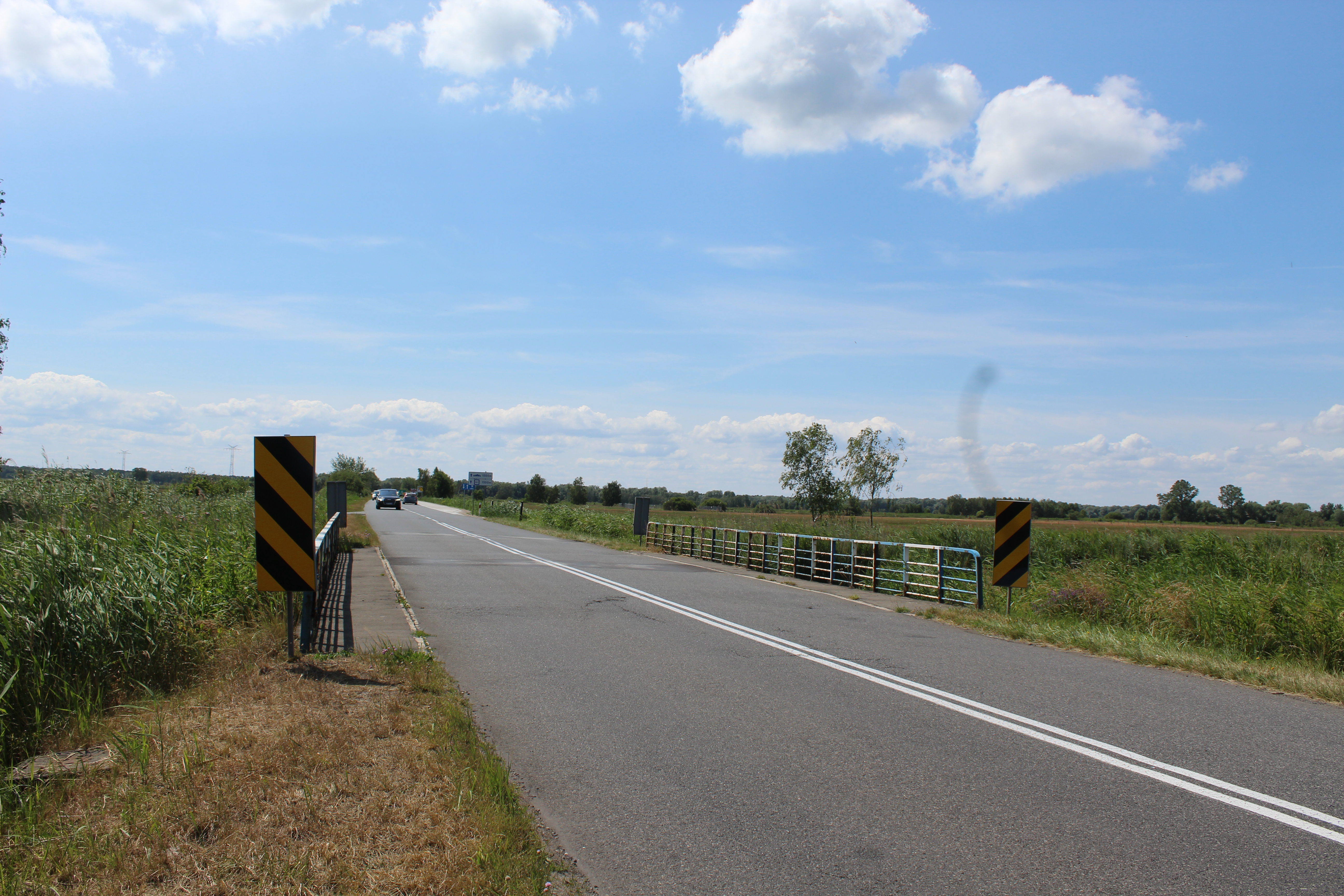Nowy pas dla oczekujących na przeprawę rozpoczyna się zaraz za mostkiem nad Ognicą. Tutaj zaczynają się z prawej strony jezdni białe, betonowe płyty. Na co dzień nie muszą być wykorzystywane, ale w trakcie nasilenia ruchu....