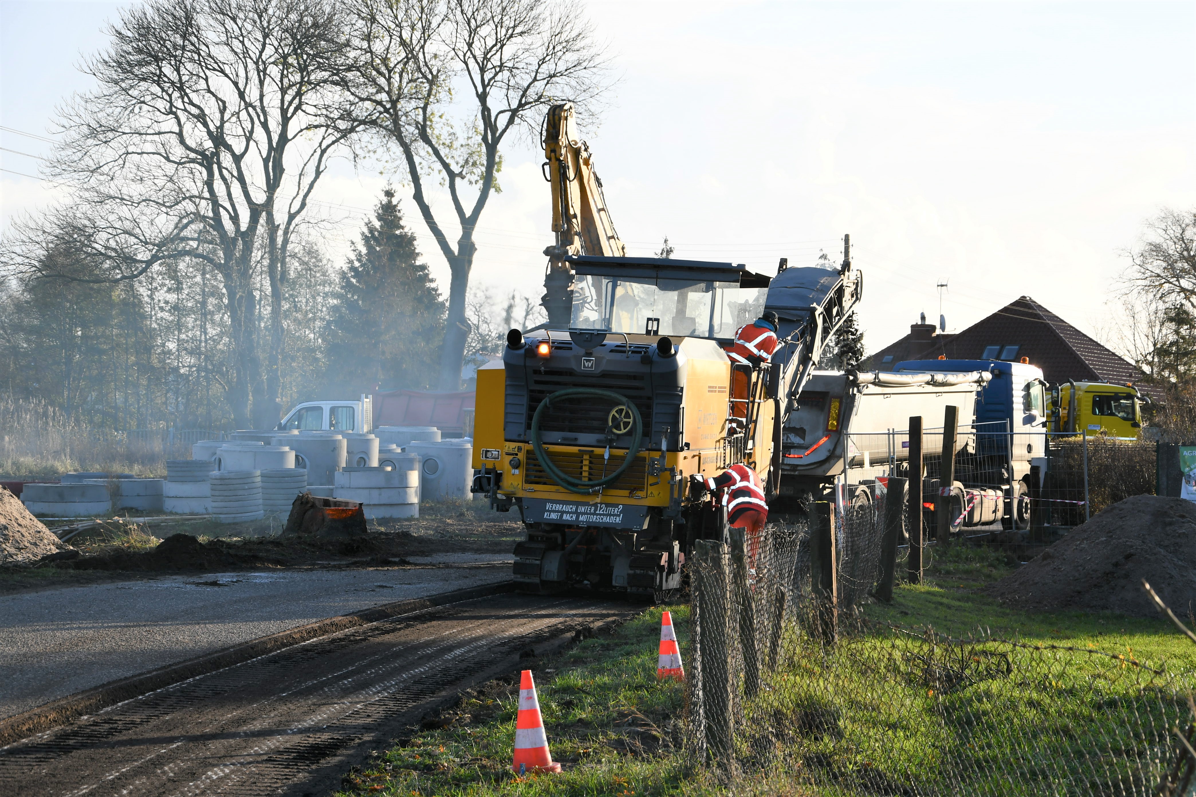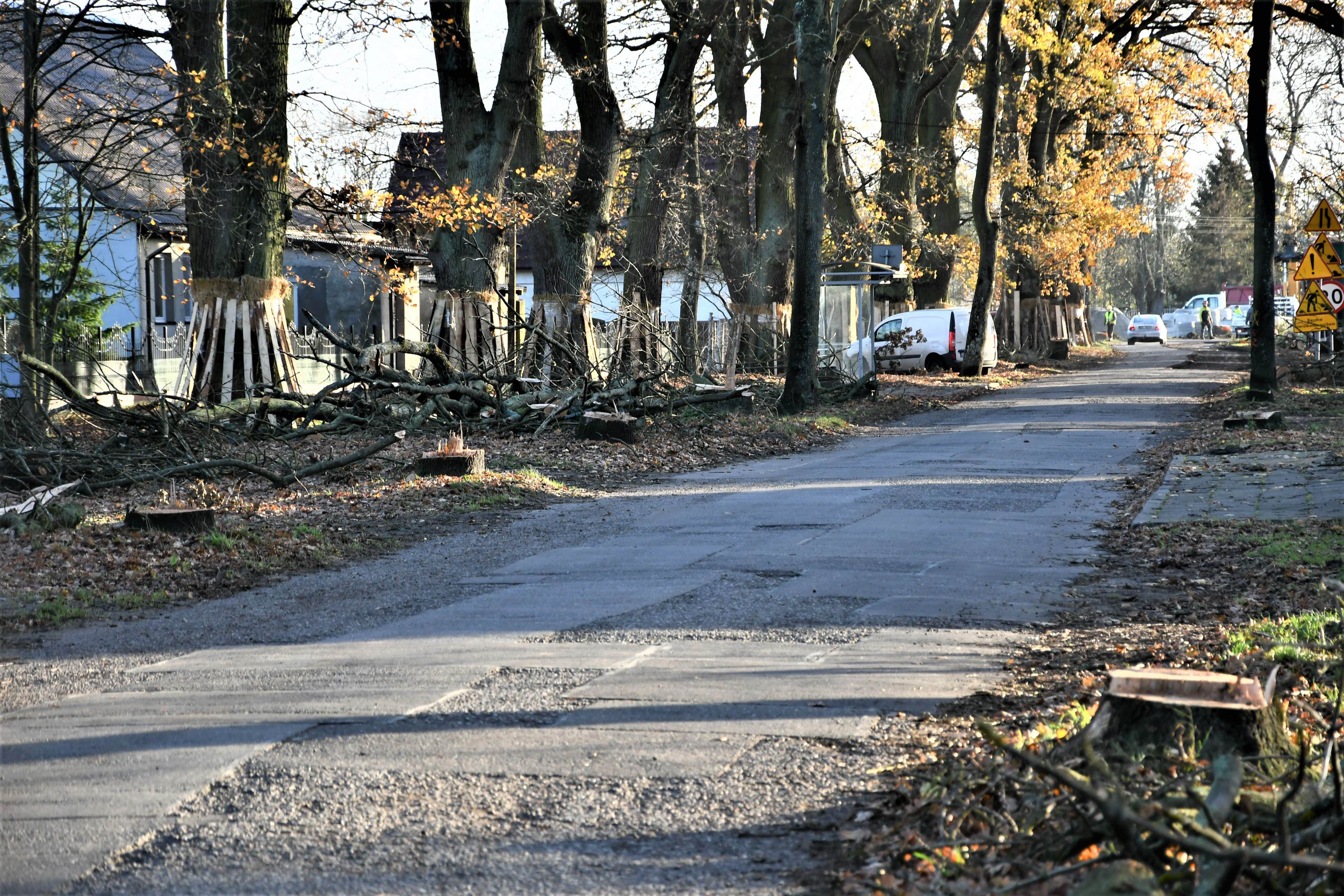 Wykonawca przebudowy ulicy 1 Maja rozpoczął frezowanie nawierzchni, czyli zrywanie starego asfaltu. Wcześniej zostały zabezpieczone przed ewentualnymi uszkodzeniami dorodne dęby, które wzdłuż znacznej części tej drogi tworzą unikatową Aleję Dębowa. Zwożone są także betonowe kręgi do budowy sieci wodociągowej i sanitarnej. Zobacz zdjęcia.