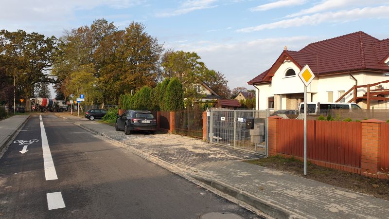 Ulica Szmaragdowa. Nowa jezdnia i kontrapasy rowerowe w Przytorze-Łunowie.
