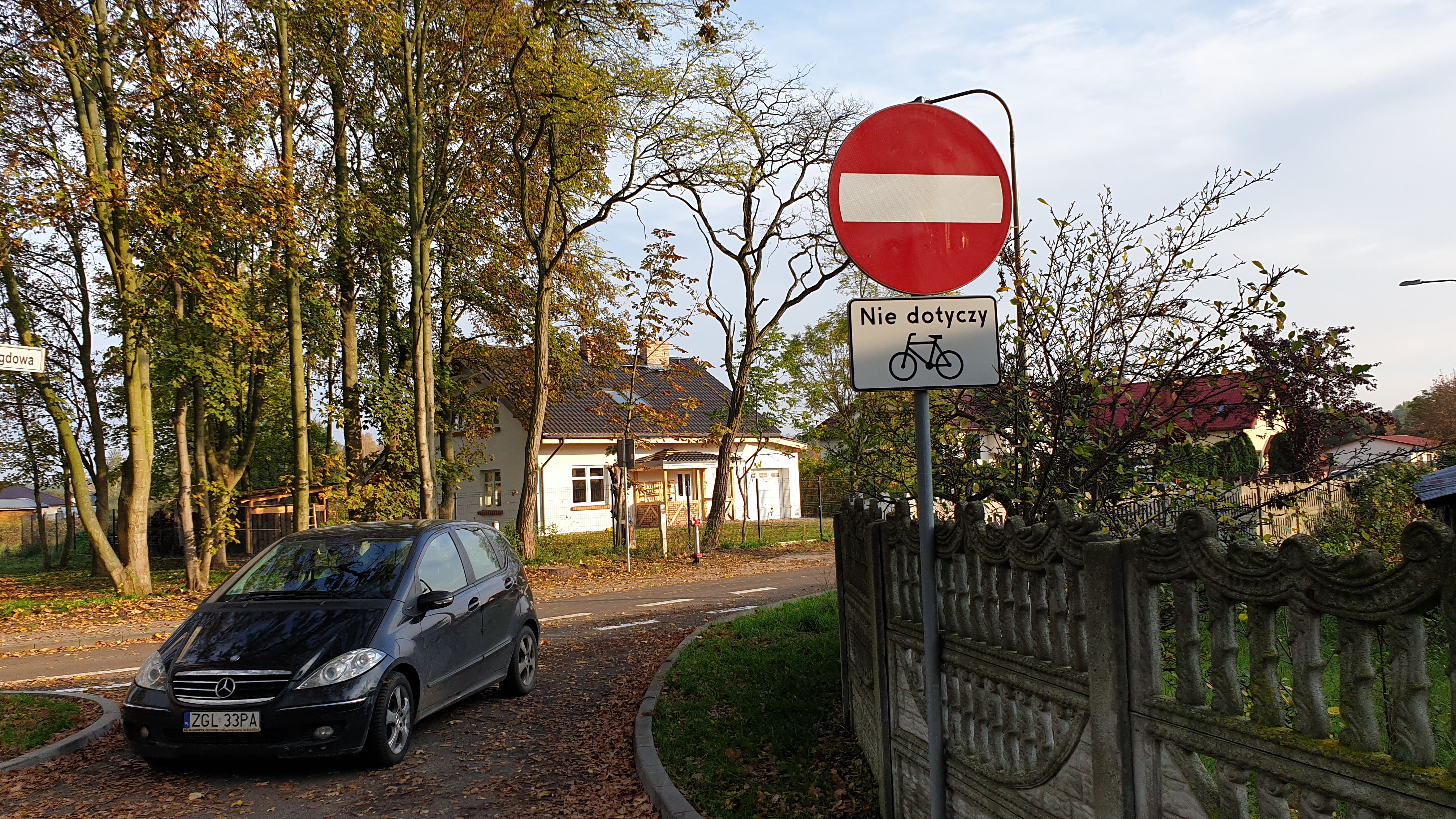 Kierowcy natomiast na wlocie od ul. Sąsiedzkiej zobaczą znak "zakazu wjazdu", natomiast przy wjeździe od strony ul. Odrzańskiej jest znak "droga jednokierunkowa".