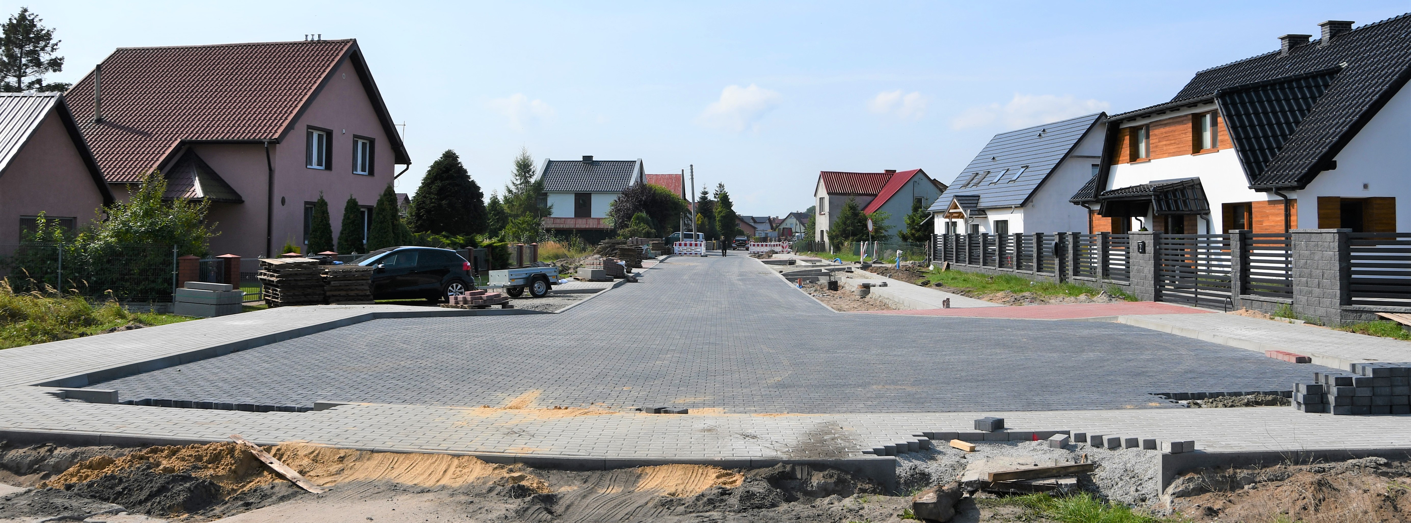 Na odcinku od placu do zawracania do skrzyżowania z ul. Tęczową została wykonana nawierzchni drogi z kostki betonowej wraz z wyniesionym skrzyżowaniem. Wykonane również zostały prace związane z ułożeniem nawierzchni chodników i zjazdów indywidualnych oraz ekokrata w miejscu planowanych miejsc postojowych.