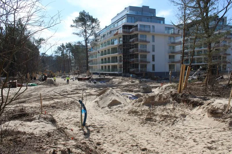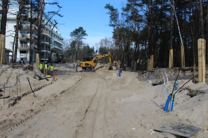 Szybko zmienia się krajobraz na budowie nowego wejścia na plażę na przedłużeniu ul. Zdrojowej. Widać już nie tylko zarys nowej drogi, ale także ronda.